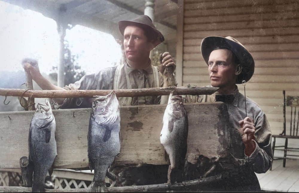 These two serious fishermen strike a stoic pose for Pennock in their rugged back country clothing. They look to the left, beyond the camera, perhaps thinking about returning to that secret fishing spot for another try at catching the big one that got away.